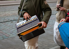 Gājienā ar akordeonu un ziedu vainagiem