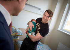 Liepājas domes priekšsēdētājs Uldis Sesks un priekšsēdētāja vietnieks pilsētas attīstības un sadarbības jautājumos Gunārs Ansiņš SIA “Liepājas reģionālā slimnīca” apciemoja un sveica šogad pirmos trīs jaundzimušos mazuļus un viņu vecākus. U.Sesks un G.Ansiņš ģimenēm pasniedza Liepājas lauvēnus un dāvanu kartes aptiekā mazuļu pūriņu papildināšanai. Katrai ģimenei tika piešķirts arī Liepājas pašvaldības ieviestais pabalsts jaundzimušajiem.