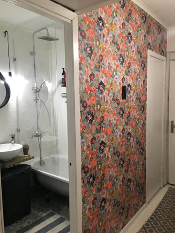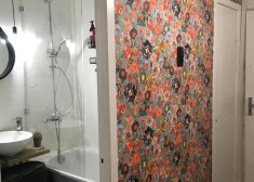 Aptuveni 200 eiro pāris ietaupījis, izlemjot neaplīmēt ar flīzēm vannas istabas sienas – tā vietā lietota grunts, izlīdzinošā špaktele, nobeiguma špaktele, gruntskrāsa un visbeidzot mitruma izturīga krāsa. Izlietne ar interesanto dizainu un tās uzstādīšanai nepieciešamais izmaksājis ap 50 eiro.