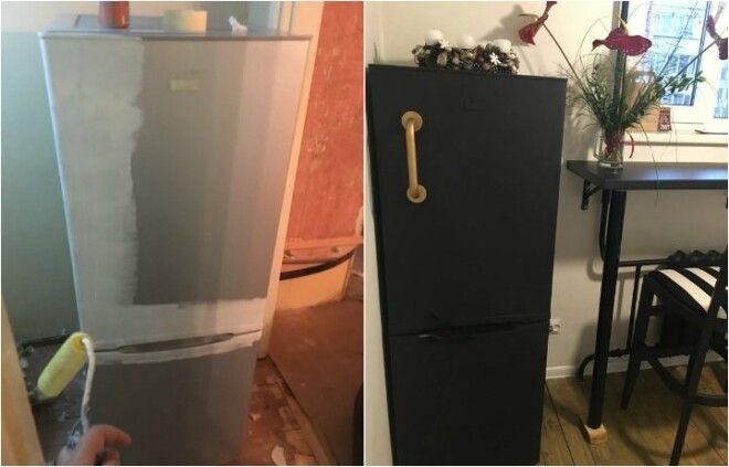 Arī mēbelēm, lai ietaupītu naudu, Ance un Reinis izmantojuši vienu krāsu. Taču pārvērtības piedzīvojis teju vai katrs pāra sadzīves nieciņš – mierā nav atstāts pat ledusskapis (skat. att.): „Oriģināli bija pelēks, auksts skapis. Grunts un melna, matēta krāsa, kā arī nokrāsots rokturis dara brīnumus!”
