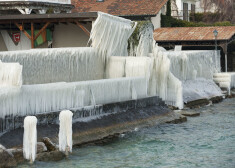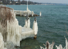 Satriecoši skaisti skati: ledus klāj Ženēvas ezera apkārtni