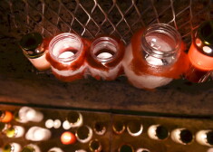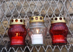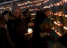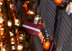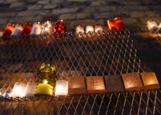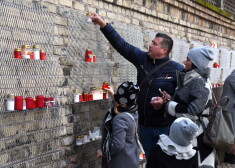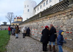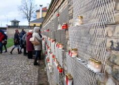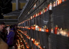 Par godu Lāčplēša dienai cilvēki 2016. gada 11. novembrī noliek svecītes pie Rīgas pils mūra.