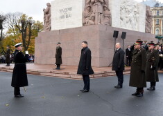 Rīgā pie Brīvības pieminekļa notikušo militāro parādi šodien, Lāčplēša dienā, par godu Latvijas armijas uzvarai pār Bermonta karaspēku vēroja vairāki ...