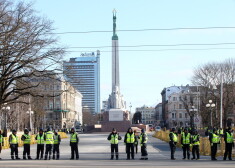 Ap Brīvības pieminekli patlaban dežūrē liels skaits likumsargu, no kuriem daļa izveidojuši tā dēvēto "dzīvo ķēdi", ierobežojot piekļuvi piemineklim no ...