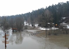 Tērvetes upe izgājusi no krastiem un pamatīgi appludinājusi dabas parku