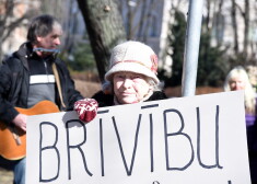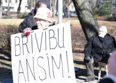 Pie Rīgas pils pasākumā par 13.janvāra Vecrīgas grautiņiem notiesātā Anša Ataola Bērziņa atbrīvošanu piketē 100 cilvēki.