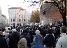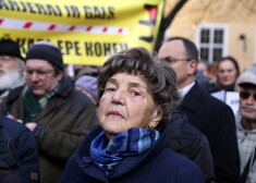 Vairāki simti pusmūža un vecāka gadagājuma cilvēku protestē pret mācībām latviešu valodā
