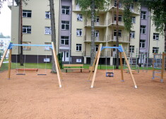 Ar ASV karavīru un ASV vēstniecības Latvijā darbinieku atbalstu veidotais spēļu laukums blakus patvēruma meklētāju izmitināšanas centram "Mucenieki".
