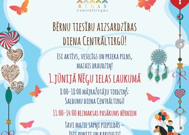 Par godu Starptautiskajai Bērnu aizsardzības dienai, piektdien, 1.jūnijā no plkst.11:00 līdz 14:00 visi laipni aicināti uz informatīvi izklaidējošu pasākumu kopumu, kas jo īpaši sagatavots bērnu auditorijai, portālu Jauns.lv informēja “Rīgas Centrāltirgū”.