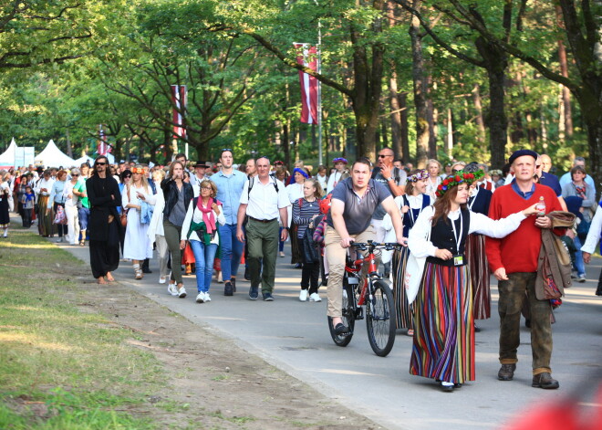 Pacilātā noskaņojumā tūkstošiem ļaužu ierodas uz svētku kulmināciju Mežaparka estrādē