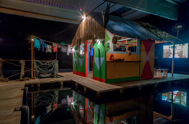 Rīgas biennālei radītais darbs “Pastāvīga vētra tropiskam zvaigznājam”, instalācija koka un bambusa mājas formā, vēsta par Venecuēlas ciematu El Congo, par šīs nomaļās vietas saistību ar naftas ieguvi un Rietumu kapitālisma straujajiem ritmiem. Instalācija ir būvēta uz pāļiem virs ūdens (spāniski – palafto) un to apņem skaņas, gaismas zibšņi, video, fotoattēli, kartes, tīkli, svēto attēli, kokosrieksti, zivis un citi savākti priekšmeti un atribūti. Uz pāļiem būvētas koka mājas ir raksturīgas Venecuēlas ciematiem pie Marakaibo ezera, kura baseinā ir milzīgas jēlnaftas rezerves, kas ezeru padarījušas par nozīmīgu ekspluatācijas un peļņas centru.