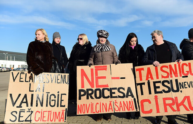 Protesta piketā pirms Zolitūdes traģēdijas krimināllietas otrās tiesas sēdes cietušie ceļ trauksmi par iespējamu lietas novilcināšanu un potenciāli slēgtu procesu.