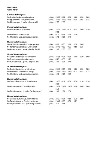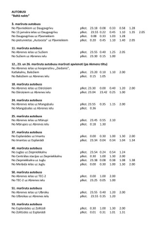 Papildu reisi tiks organizēti, apkalpojot pēc iespējas lielāko daļu Rīgas mikrorajonu un nodrošinot pasažieru nokļūšanu uz/no „Baltās nakts” pasākumiem: