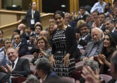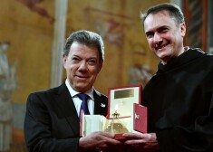 Pāvests Francisks svētdien svinīgā ceremonijā Vatikānā apbalvojis Holivudas aktierus Ričardu Gīru, Džordžu Klūniju un Selmu Haijeku.