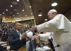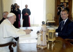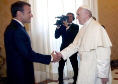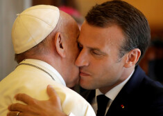 Ar skūpstiem uz vaiga - Francijas prezidents Makrons tiekas ar Romas pāvestu
