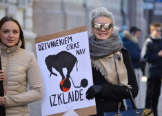 Cilvēki pie Saeimas protestē pret dzīvnieku cirku