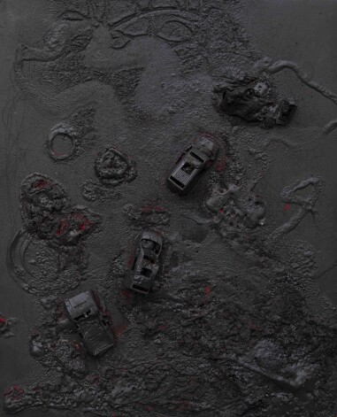 „Nekurienes vidū” ir divu atzītu mākslinieku kopprojekts, kur skatāmas vairākas gleznu un instalāciju sērijas, kā arī lielformāta skulptūra – mākslas darbi, kas radīti speciāli šai izstādei, abiem autoriem dialogā runājot par realitāšu un ideju konfrontācijām.