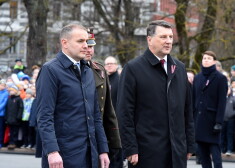 Vējonis kopā ar Islandes prezidentu noliek ziedus pie Brīvības pieminekļa