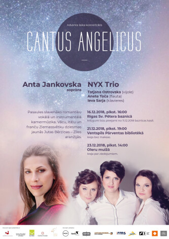 Romantiskā, cilvēkmīlestības pilnā Ziemassvētku koncertprogrammā pirmo reizi kopā muzicēs Anta Jankovska (soprāns) un “NYX Trio” − Anete Toča (flauta), Tatjana Ostrovska (vijole) un Ieva Sarja (klavieres). Koncertā skanēs pasaules slavenāko romantiķu vokālā un instrumentālā kamermūzika, vācu, itāļu un franču Ziemassvētku dziesmas Jutas Bērziņas – Zīles aranžijās.