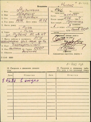 "Kā tagad atceros, vervētājs man teica - mēs nerakstīsim, ka tu piekrīti sadarboties. Rakstīsim, ka tu piekrīti palīdzēt. Tad arī šis tika noformēts, un man tika piešķirts pseidonīms Nils. Šī saruna, kā man šķiet, liecina, ka ne tikai man bija liela izšķiršanās pieņemt šo lēmumu un piekrist piedāvājumam, bet arī mans vervētājs saprata šo situāciju un mēģināja mana lēmuma parakstīt dokumentu cilvēcisko smagumu mīkstināt, izvēloties vārdus ar zināmām nozīmes niansēm," spriež Auziņš.