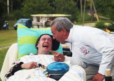 Rolands un Ilona Ūdri nometnē "Līdzskaņa", kas palīdz grūtībās nonākušiem Latvijas māksliniekiem.