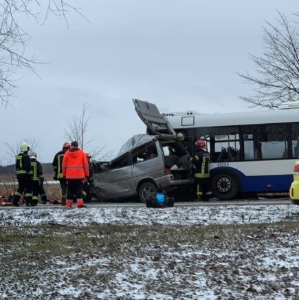 FOTO no notikuma vietas. Rīgā pie pagrieziena uz Voleriem sadursmē starp vieglo automašīnu un Rīgas sabiedrisko autobusu, vairāki cilvēki cietuši un divi gājuši bojā. pic.twitter.com/OqGZyC5BWJ