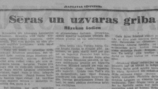 Daugavpilī iznākošais “Daugavas Vēstnesis” 1944. gada 14. aprīlī publicējis rakstu “Sēras un uzvaras griba. Rēzekne šodien”, kurā teikts: “Kilometru pēc kilometra tuvojamies Rēzeknei. Braucēju vidū valda klusums, garastāvoklis nospiests, sirdis smeldz. Pāri visu galvām kā sēru plīvurs uzgūlies jautājums: kādu tagad redzēsim Rēzekni? Torņi vēl veseli - priecājas sirds, ieraugot Rēzeknes panorāmu. Bet tālāk? Līdz mašīna ieripo pilsētas teritorijā, aizvien drūmāka kļūst aina, redzot vienu pēc otra sagrautos namus. (..)