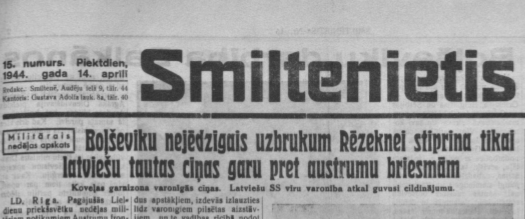 Tolaik Latvijā valdošā nacistu ideoloģija, protams, vairāk uzsvēra nevis rēzekniešu traģēdiju, bet gan to, ka tā viņus aizvien ciešāk saliedē cīņassparā pret boļševismu un mudina iestāties leģionā. Par to liecina arī liels pirmās lapas virsraksts “Smiltenietī”: “Boļševiku nejēdzīgais uzbrukums Rēzeknei stiprina tikai latviešu tautas cīņas garu pret austrumu briesmām”.