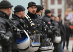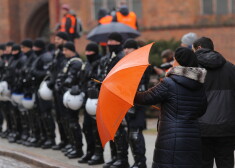 Leģionāru piemiņas gājiena dalībniekus pie Brīvības pieminekļa sagaida "antinacisti"