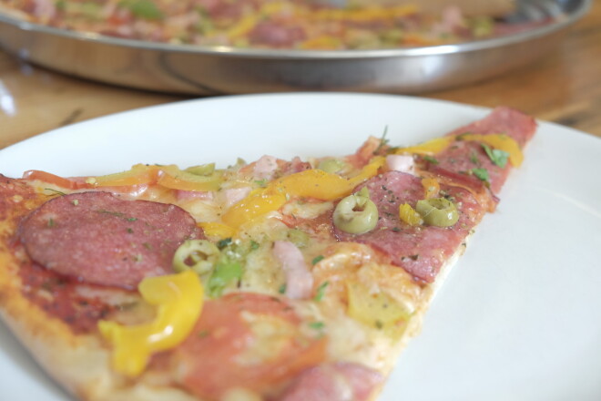 Tā nav nedz pārāk plāna, nedz bieza. Siers un salami – ja šo abu ingredientu saspēli pierakstītu rūtiņu burtnīcā, tad tur droši vien iznāktu zelta griezums vai kaut kas tāds (atvainojos matemātiķiem, ja šis salīdzinājums griež ausīs, man ģeometrijā bija 4).