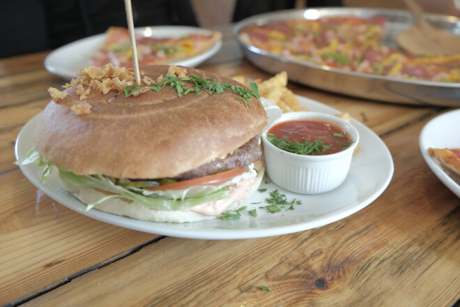 Liellopa burgers tika pasniegts ar frī kartupeļiem un tomātu mērci. Burgeru pazinēja Toma vārdiem sakot, tas esot bijis gluži kā mājās taisīts, ļoti sabalansēts un burgera topu augšgalā ierindojams.
