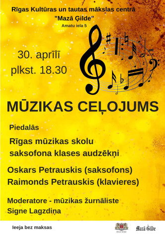 Koncertu “Mūzikas ceļojums” organizē RKTMC “Mazā Ģilde” ar Rīgas domes atbalstu. Ieeja koncertā bez maksas.