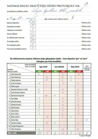 Divi deputāti nav pratuši nobalsot - viņu biļeteni atzīti par nederīgiem