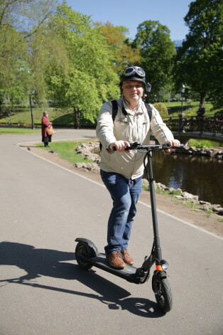 Rīdzinieks Viesturs atklāj, ka jau labu laiku meklējis veidu, kā efektīvāk un ātrāk mērot ceļu no punkta A līdz punktam B – no mājām Rīgas centra nomalē līdz darbam Vecrīgā. “Pēc gana ilgiem meklējumiem uzzināju par šādiem braucamajiem un piemeklēju atbilstošu sev – iegādājos internetā par aptuveni 700 eiro. Tas iztur 120 kilogramu svaru un attīsta ātrumu līdz 35 kilometriem stundā. Man gan līdz šim izdevies sasniegt 17 kilometrus,” stāsta Viesturs. Viņš, braucot ar skūteri, vadās pēc ceļu satiksmes noteikumiem, kuri attiecas uz velosipēdistiem, un savā maršrutā izmanto veloceliņu, kas stiepjas gandrīz no mājām līdz pat Vecrīgai. “Skūters man ir tikai nedēļu, līdz šim nav bijis nekādu incidentu, ceļu ar pārējiem satiksmes dalībniekiem ir izdevies sadalīt. Pavisam noteikti ieteiktu to arī citiem, kuri dzīvo pilsētā,” iespaidos dalās Viesturs.