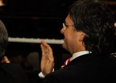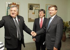 Ministru prezidents Valdis Dombrovskis un bijušais kultūras ministrs Ints Dālderis viesojas Emīla Dārziņa speciālajā mūzikas vidusskolā.