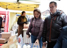 Igaunijas prezidents Tomass Hendriks Ilvess un Ieva Kupce apmeklē Kalnciema kvartālu