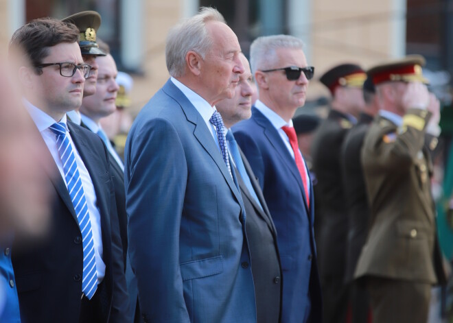 FOTO: ar Vējoņa un Kaljulaidas klātbūtni vērienīgi godina Cēsu kauju simtgadi