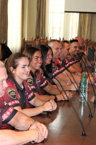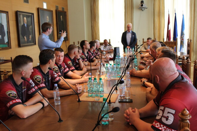Pirms došanās uz sporta spēlēm, ceturtdien, 1. augustā, komanda tikās ar Rīgas domes Drošības, kārtības un korupcijas novēršanas komitejas priekšsēdētāju Daini Turlo. Ceļa vārdus teica arī Rīgas pašvaldības policijas priekšnieks Juris Lūkass.