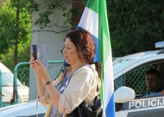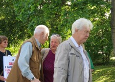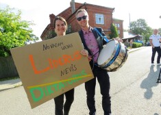 Kolcenieki un dundadznieki pulcējas piketā Kolkas pārvaldnieka Pinkena aizstāvībai
