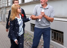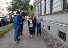Būvniecības nozares pārstāvji un advokāti dodas prom no KNAB telpām