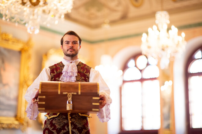 · Noslēgumā būs iespēja pabūt Melngalvju nama krāšņākajā telpā – Svētku zālē, kurā mīt maģiska atmosfēra, mirdzošas lustras un karaliska gleznu galerija.