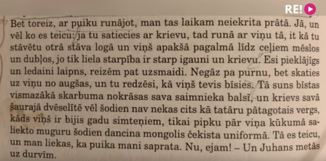 Pie LTV raidījuma "4.studija" vērsās kādas Rīgas skolas vidusskolnieces māte, kurai meita sūdzējusies par naida kurināšanu obligātajā literatūrā skolā. "...krievs savā šaurajā dvēselītē [..]" - šī ir frāze no trimdas latviešu rakstnieka, prozaiķa un dzejnieka Gunara Janovska darba "Sola". Izrauts no konteksta tas, protams, skan savdabīgi un netoleranti. Taču ne viss ir tā, kā izskatās.
