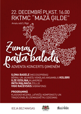 Ceturtā Adventa koncertu „Ziemas pasta balodis” organizē RKTMC „Mazā Ģilde” ar Rīgas domes Izglītības, kultūras un sporta departamenta atbalstu.