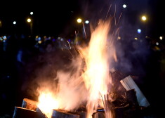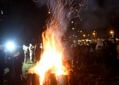Zaķusalā iekurināts arī ugunskurs un sanākušie cilvēki dalās atmiņās par 1991.gada janvāra vēsturiskajiem notikumiem.