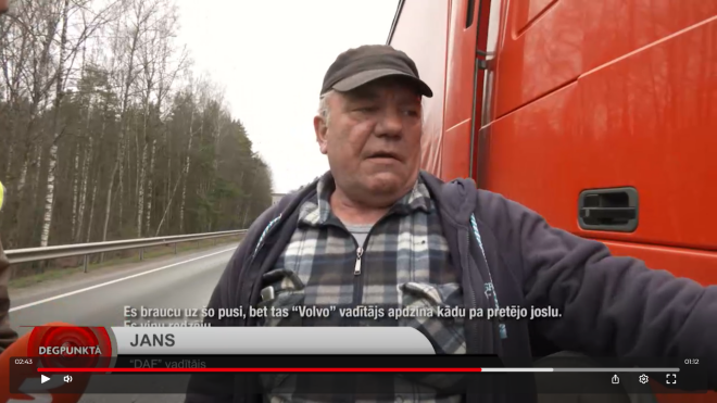 TV3 raidījums "Degpunktā" piektdien ziņoja par kādu negadījumu uz Tallinas šosejas, kur frontālu sadursmi piedzīvojis kravas auto un "Volvo" markas spēkrats. Šodien sociālajos tīklos publicēts aculiecinieka video atklāj, ka kravas auto šoferis vakar televīzijai klaji melojis.