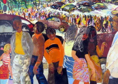 Izsoles organizatori īpaši izceļ Jāņa Pauļuka 1977. gada gleznu “Krustojumu ritmi”, kurā atspoguļojas māksliniekam raksturīgā dinamika un krāsu palete. Mākslinieka Pauļuka daiļradē šāda formāta darbi parasti tika veikti pēc pasūtījuma, nonāca privātajās vai valsts institūciju kolekcijās un šobrīd pārsvarā atrodami muzeju krājumos, kas šo gleznu padara par retumu mākslas tirgū. Glezna ir bijusi eksponēta vairākās izstādēs Rīgā un Maskavā, kā arī ir reproducēta.