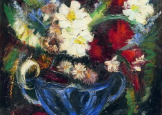 Jāņa Ferdinanda Tīdemaņa kompozīcijā “Ziedi” (sākumcena – 4900 eiro) redzams mākslinieka iemīļotais trauksmainais otas triepiens un spēcīgās krāsu kombinācijas. Glezna ir tapusi pagājušā gadsimta trīsdesmito gadu vidū – šī perioda gleznas mākslas tirgū parādās daudz retāk nekā mākslinieka vēlāko, trimdas laiku darbi. Ziedu gleznojumu plejādē jāizceļ arī Leo Svempa 1940. gada “Kluso dabu ar ziediem” (sākuma cena – 4800 eiro), kas pārstāv nozīmīgu Leo Svempa daiļrades daļu – ziedu klusās dabas.