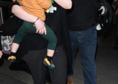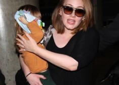 Dziedātāja Adele ar dēlu Andželo Losandželosas lidostā