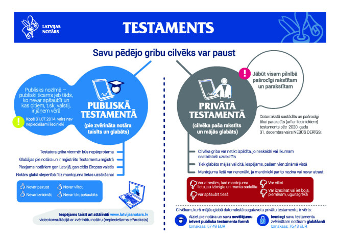 “Nereti cilvēkus mulsina apzīmējums publisks testaments, bet tas nenozīmē, ka pie notāra taisītā testamentā iekļautais top pieejams visai pasaulei. Publisks testaments nozīmē to, ka fakts par testamentu, kas taisīts pie notāra, tiek iekļauts Testamentu reģistrā. Tas nozīmē, ka testatora griba atklāsies vienmēr un jebkurā gadījumā. Arī tad, ja pie notāra taisītā testamenta novēlējums kādam no mantiniekiem nebūtu pieņemams un viņš būtu gribējis to no citiem mantiniekiem noslēpt,” skaidro Jānis Skrastiņš.
