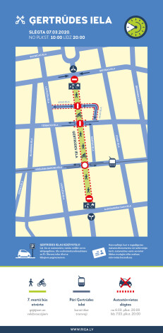 Turpinot mobilitātes eksperimentu, sestdien, 7.martā, Ģertrūdes iela posmā no Brīvības ielas līdz Aleksandra Čaka ielai tiks atvēlēta gājējiem, velobraucējiem, kā arī dažādām uzņēmējdarbību veicinošām iecerēm, informē Rīgas domes Satiksmes departamenta Sabiedrisko attiecību vadītāja Ilze Dimante.